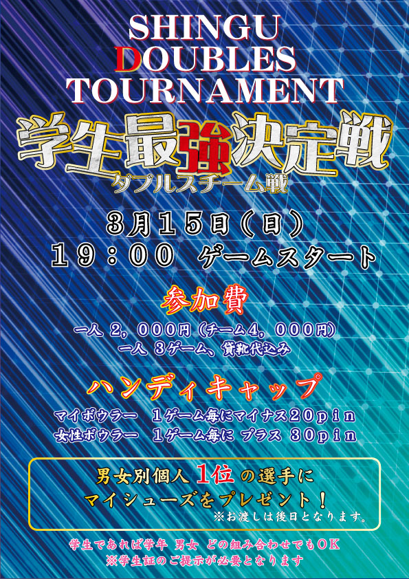 学生最強決定戦~ダブルスチーム戦~を開催いたします