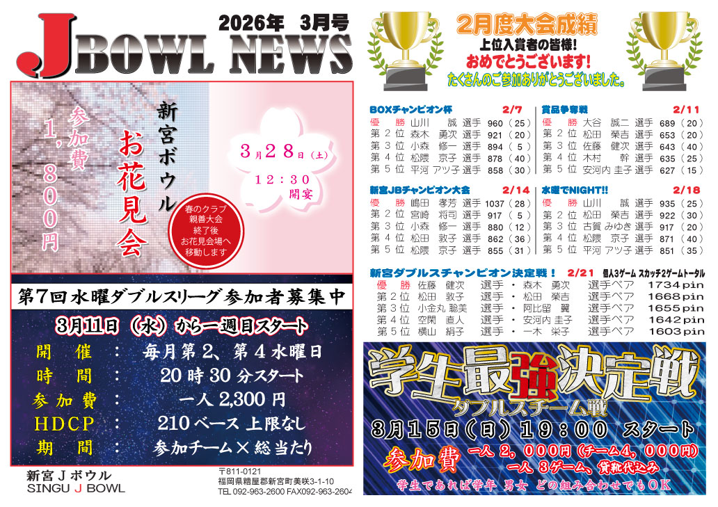 新宮Jボウル 3月スケジュール更新
