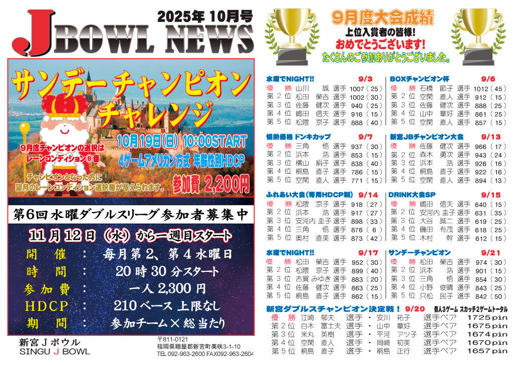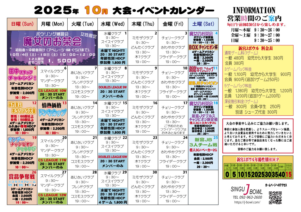 新宮Jボウルの2025年10月度スケジュールを更新致します。