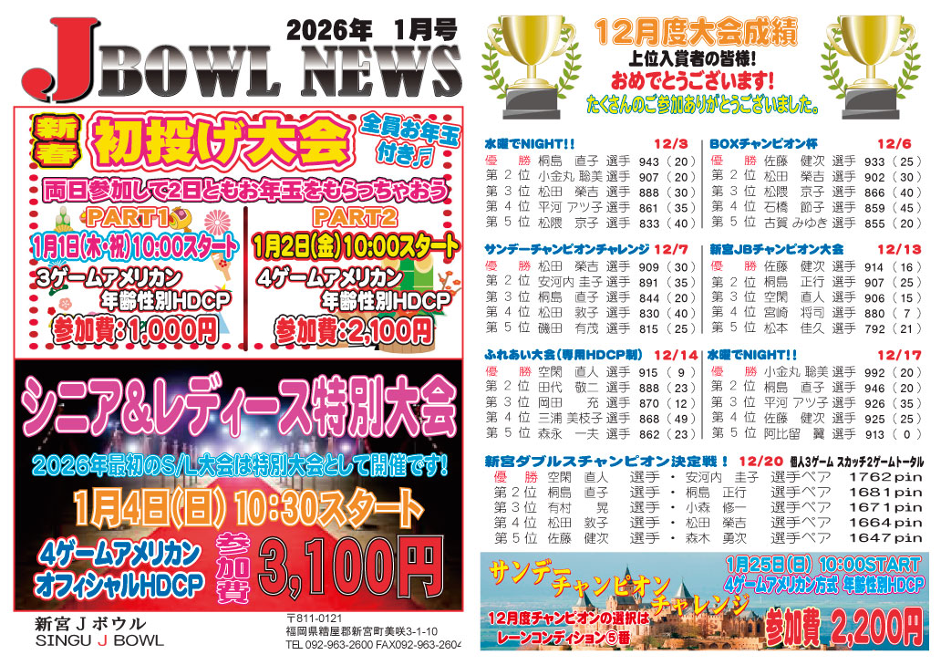 お正月もぜひ新宮Jボウルをご利用下さい。